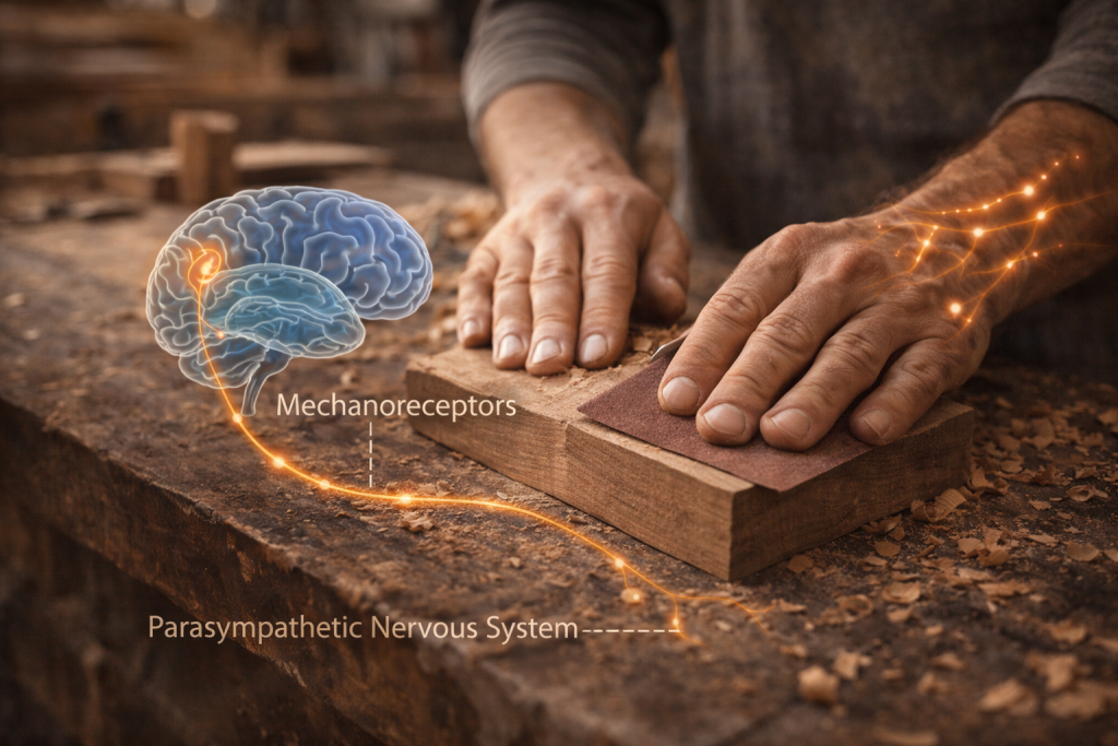 Slow, consistent tactile engagement—such as sanding wood or shaping clay—can stimulate pathways associated with parasympathetic activation. This shift promotes slower heart rate, steadier breathing, and decreased muscle tension.